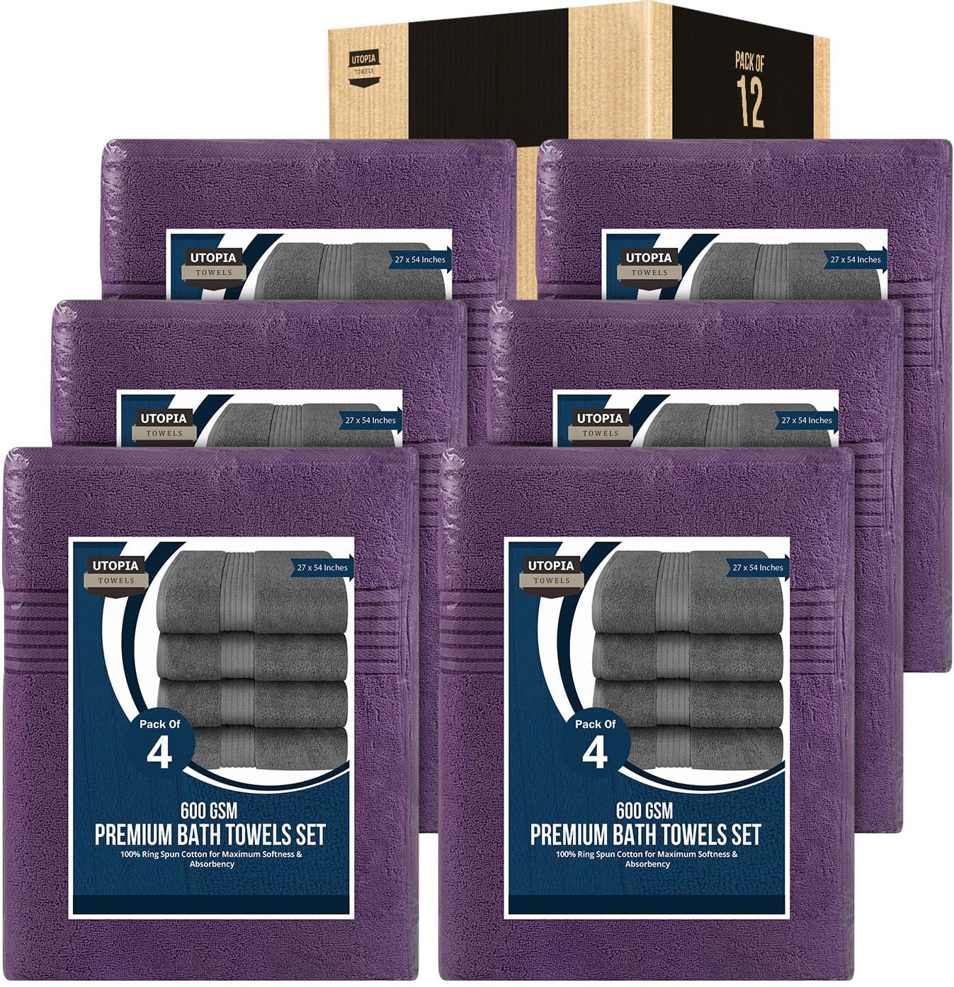 500 GSM Luxury Bath Towel by Utopia Towels - Bulk Pack of 12